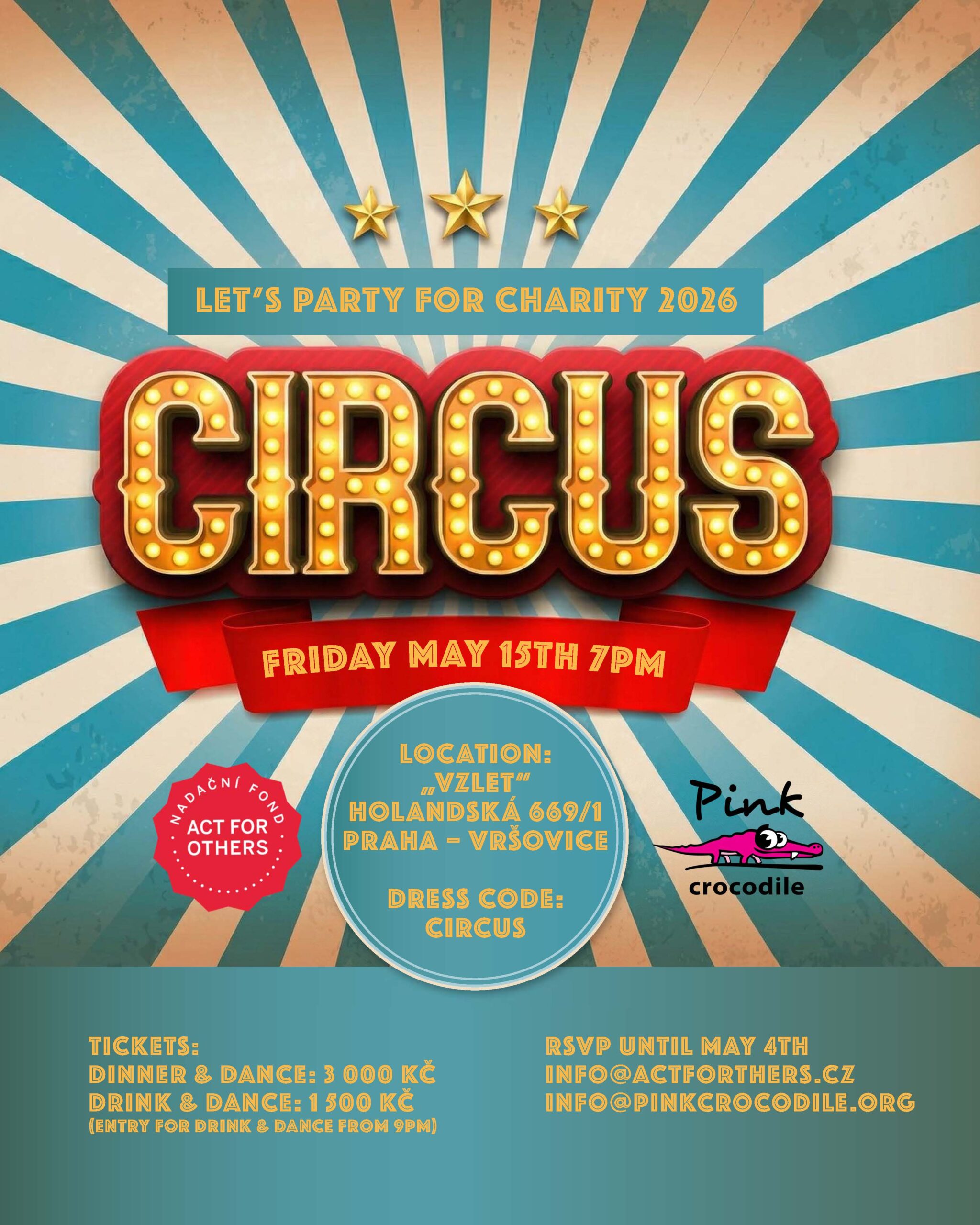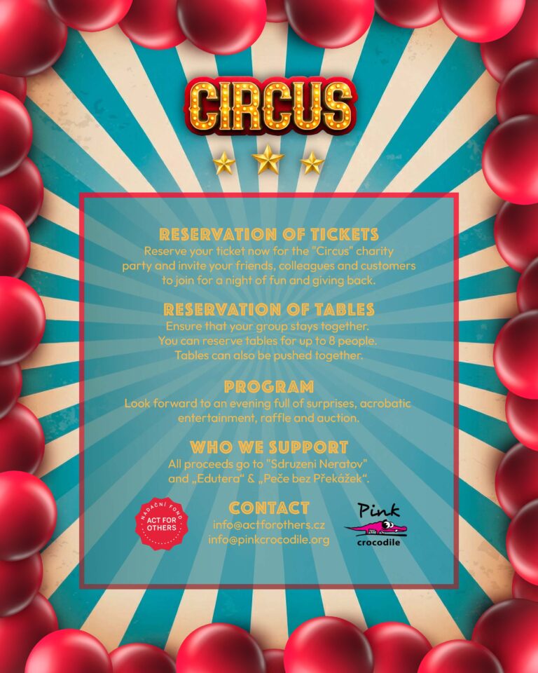 To ensure that you can all sit together at the same table, please book in good time at info@actforothers.cz